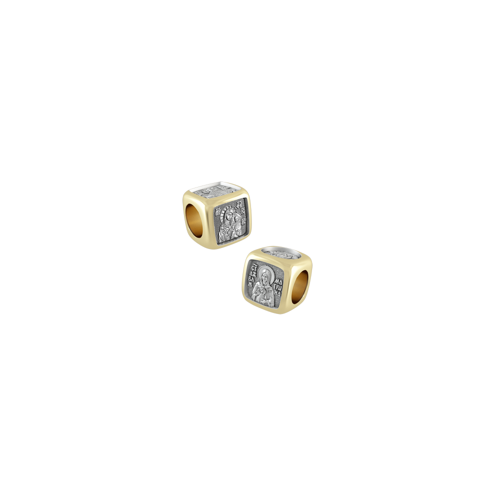 На бусине помещены образы Богородицы «Неувядаемый цвет», Святого Николая Чудотворца, Матроны Московской и Ангела Хранителя.