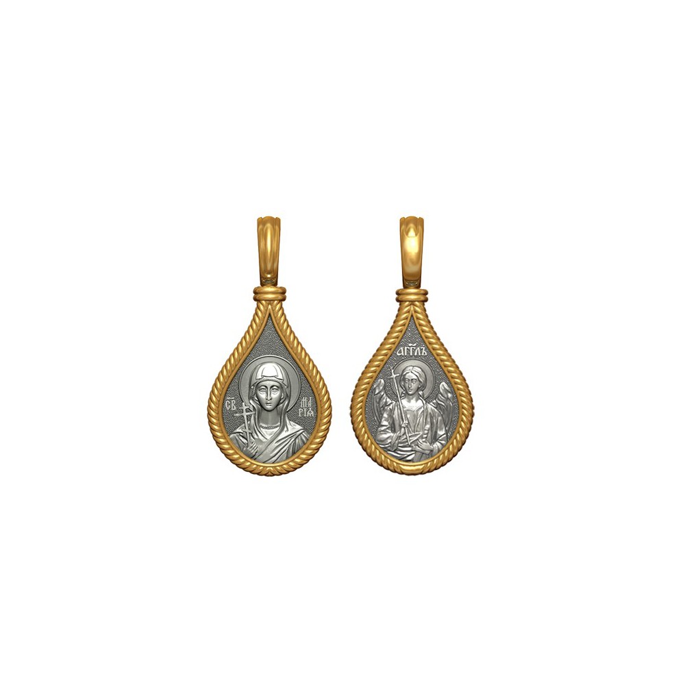 Позолоченная нательная иконка с почитаемым образом Святой Марии Магдалины на лицевой стороне и Ангела Хранителя на оборотной.