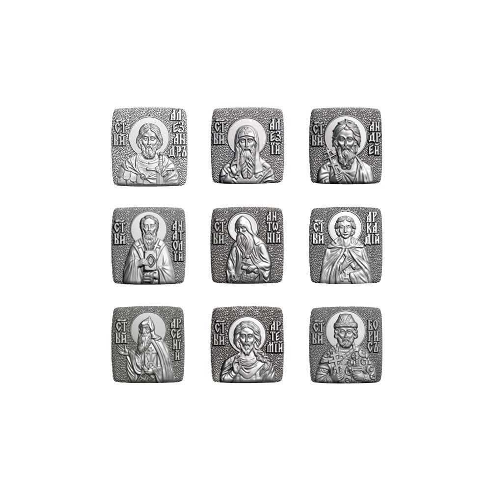 Серебряная православная икона с образом Святого небесного покровителя. Данную почитаемую икону можно разместить в ковчеге нательного креста мощевека (арт. 05.000 / арт. 05.000.Р) или носить в кошельке.