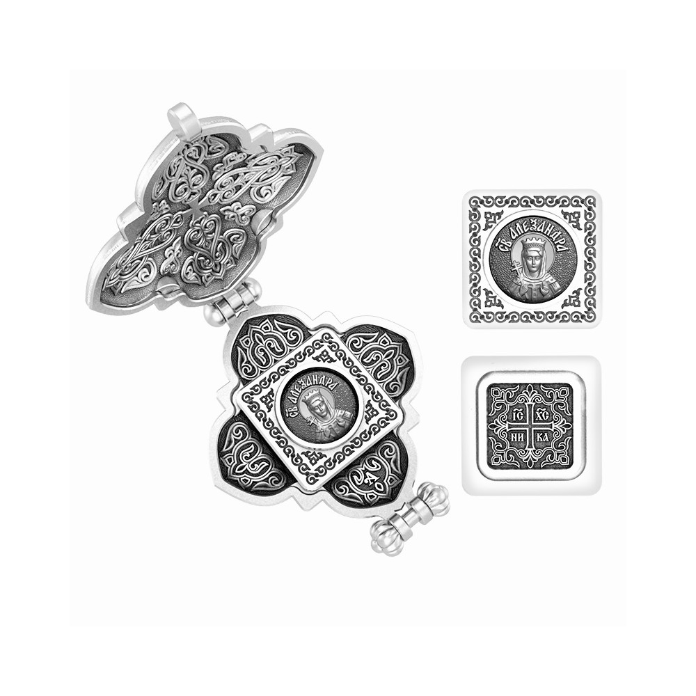 Серебряная православная икона с образом Святого небесного покровителя. Данную почитаемую икону можно разместить в ковчеге нательного креста мощевека (арт. 05.000 / арт. 05.000.Р) или носить в кошельке.