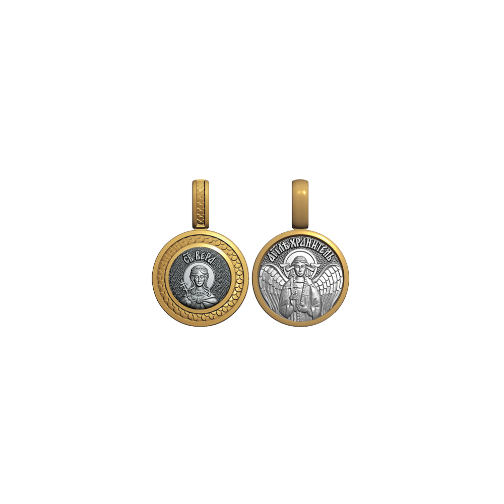 Миниатюрная серебряная нательная иконка с образом Святой мученицы Веры на лицевой стороне и Ангела Хранителя на оборотной.