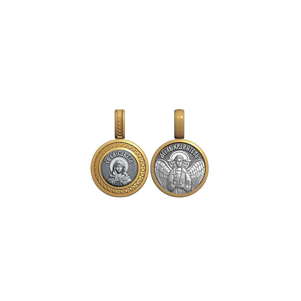 Миниатюрная серебряная нательная иконка с образом Святой праведной Елизаветы на лицевой стороне и Ангела Хранителя на оборотной.