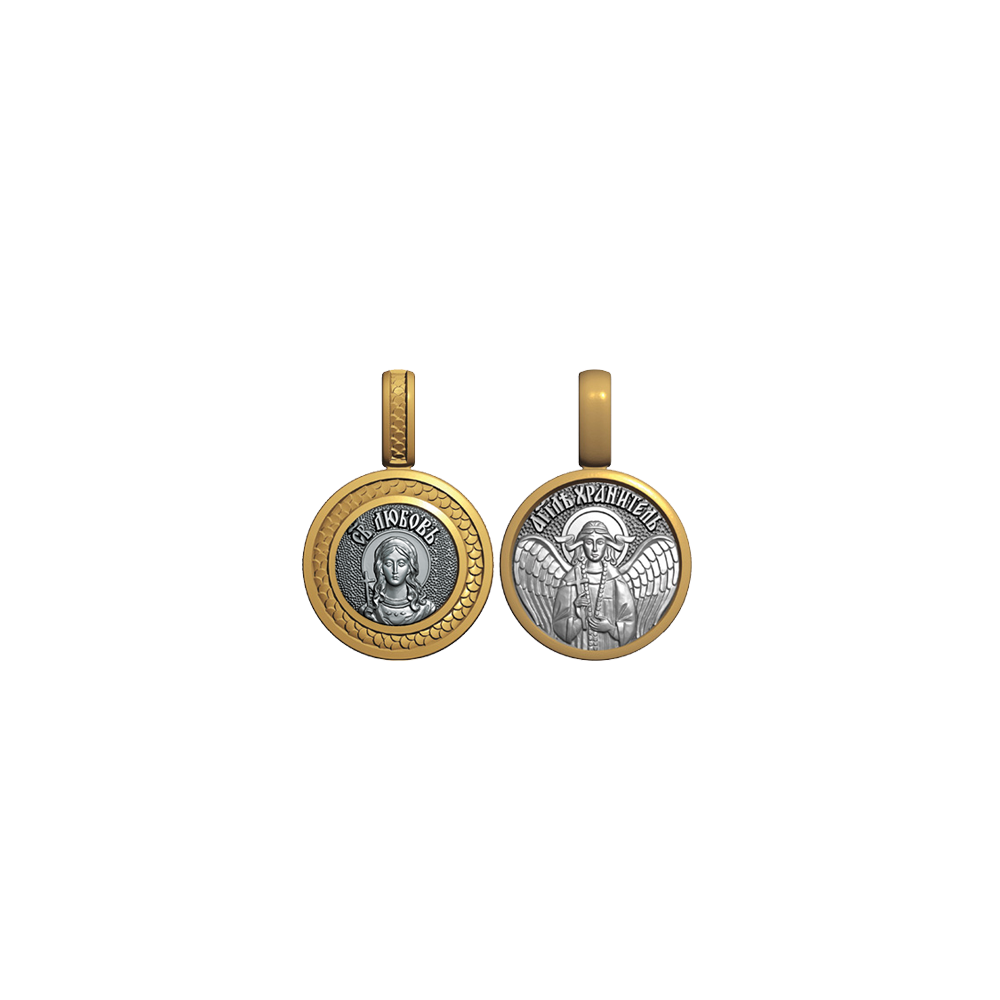 Миниатюрная серебряная нательная иконка с образом Святой мученицы Любови на лицевой стороне и Ангела Хранителя на оборотной.