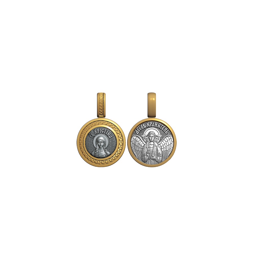 Миниатюрная серебряная нательная иконка с образом Святой Кристины на лицевой стороне и Ангела Хранителя на оборотной.