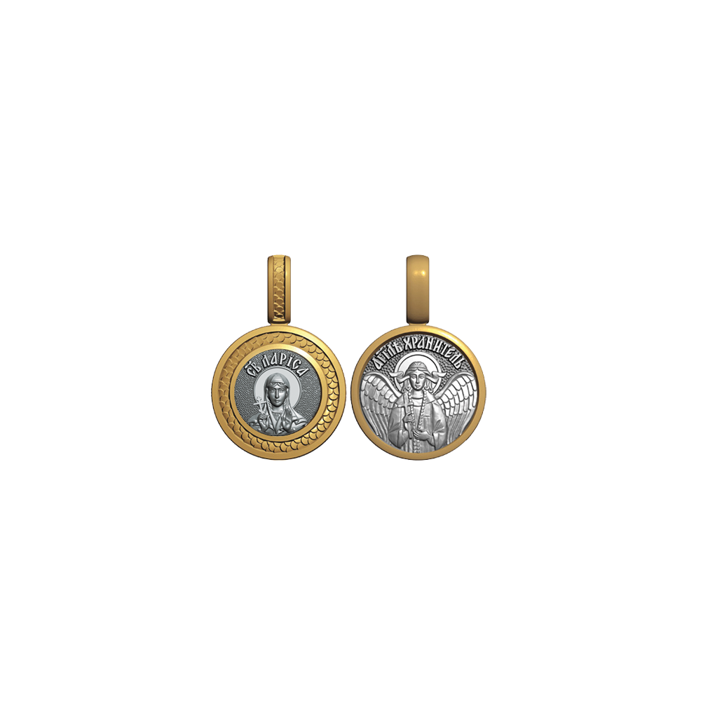 Миниатюрная серебряная нательная иконка с образом Святой мученицы Ларисы на лицевой стороне и Ангела Хранителя на оборотной.