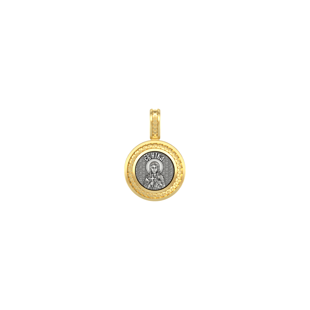 Миниатюрная серебряная нательная иконка с образом Святой мученицы Ники на лицевой стороне и Ангела Хранителя на оборотной.