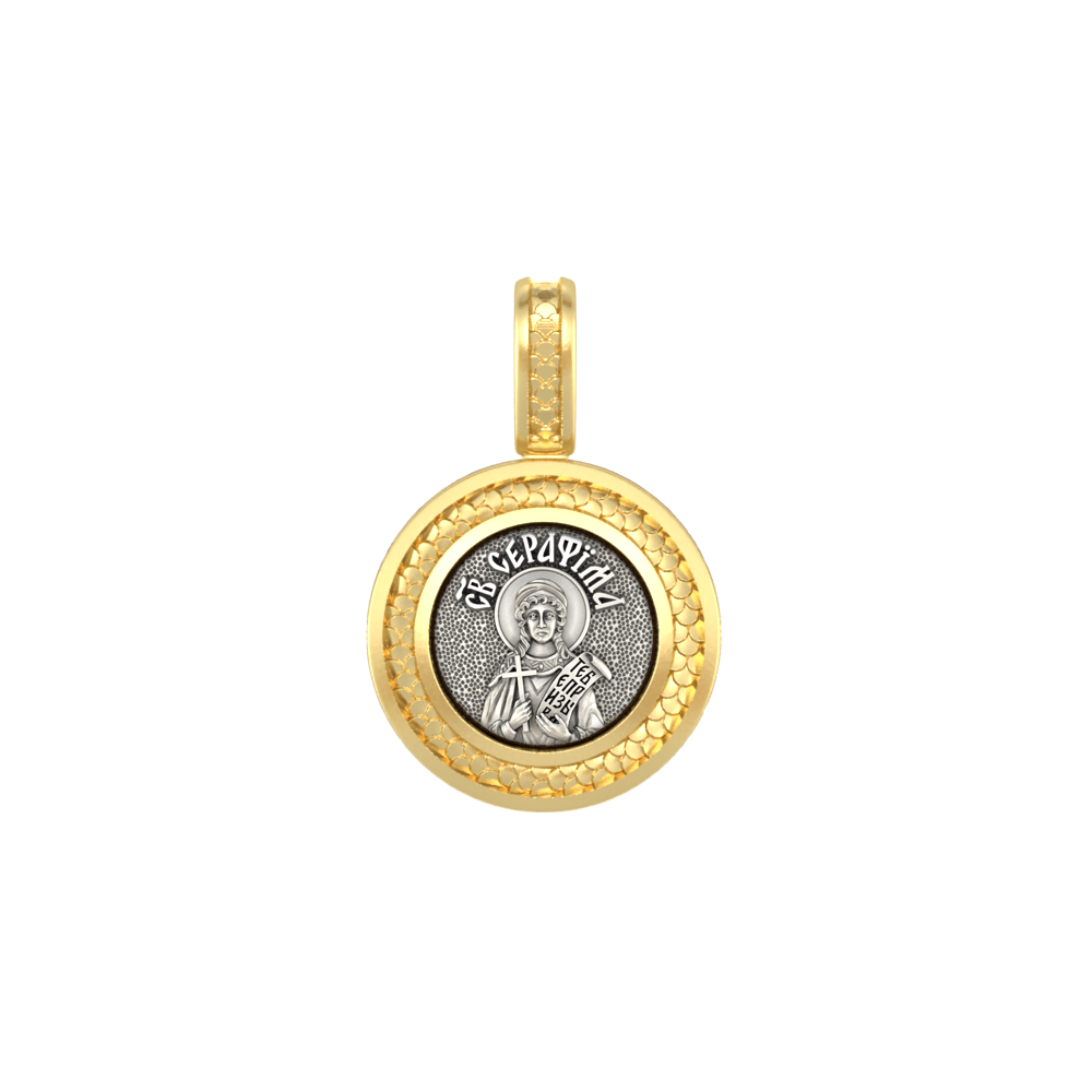 Миниатюрная серебряная нательная иконка с образом Святой мученицы Серафимы на лицевой стороне и Ангела Хранителя на оборотной.