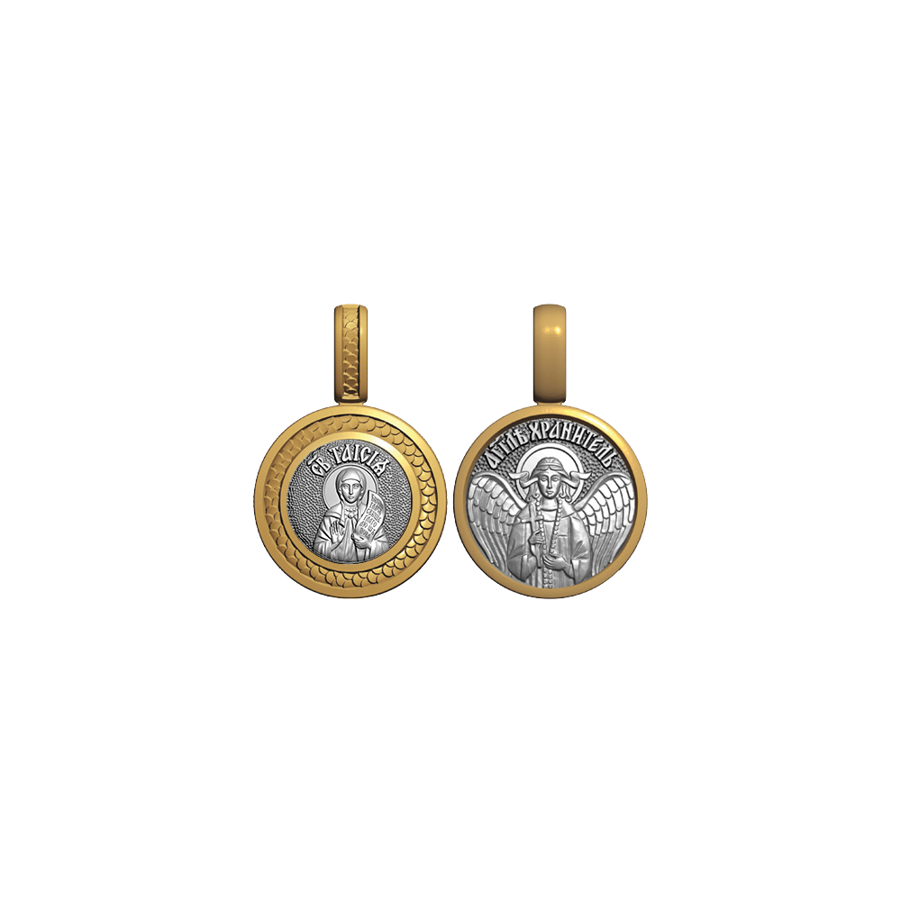 Миниатюрная серебряная нательная иконка с образом Святой мученицы Таисии на лицевой стороне и Ангела Хранителя на оборотной.