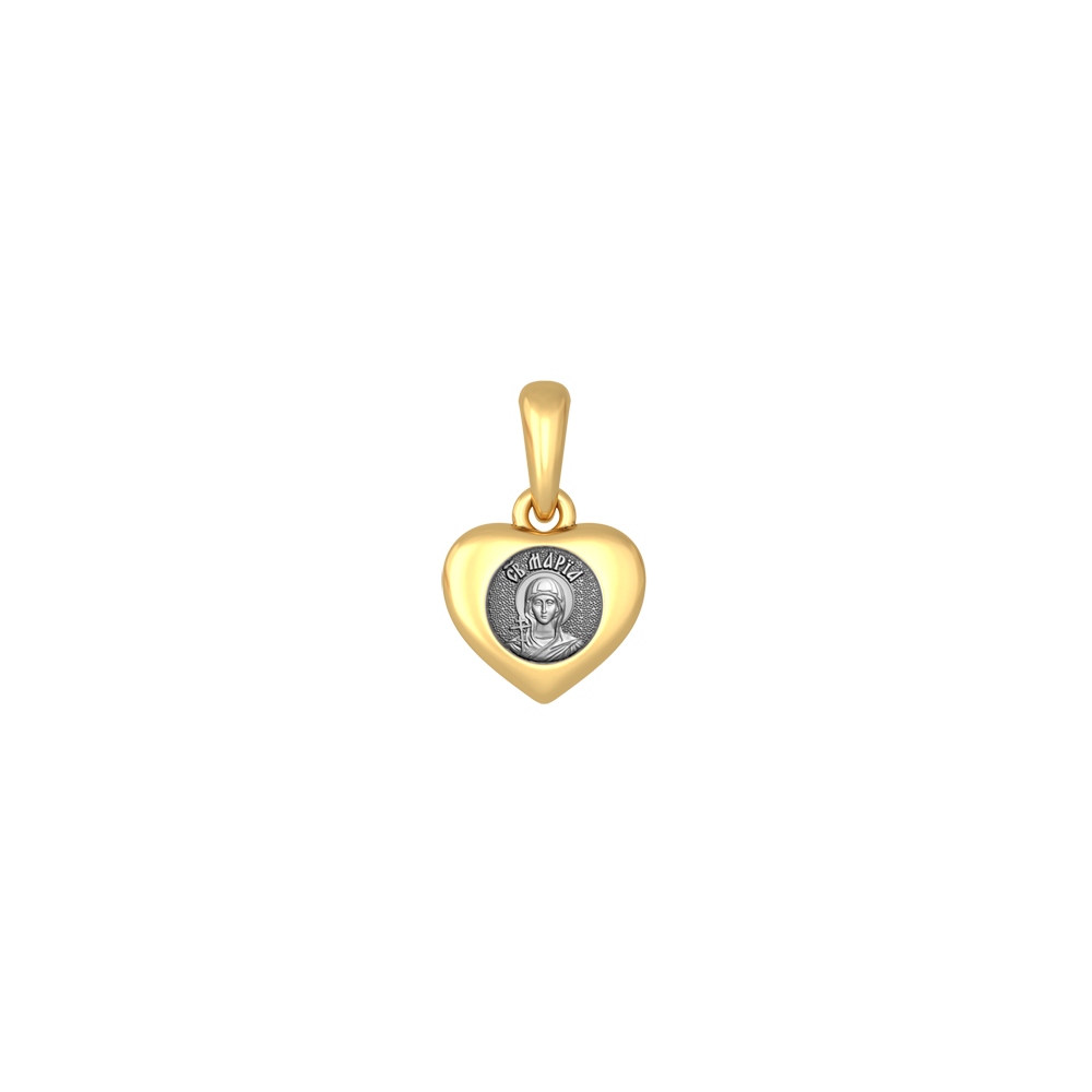 Иконка на подвижной петельке в форме сердца с образом Святой Марии Магдалины на лицевой стороне и райскими птицами на оборотной. Птицы райского сада Эдем, сидящие на ветках — это Евангельский символ людей, о которых Бог неустанно заботится, как о Своих детях.
