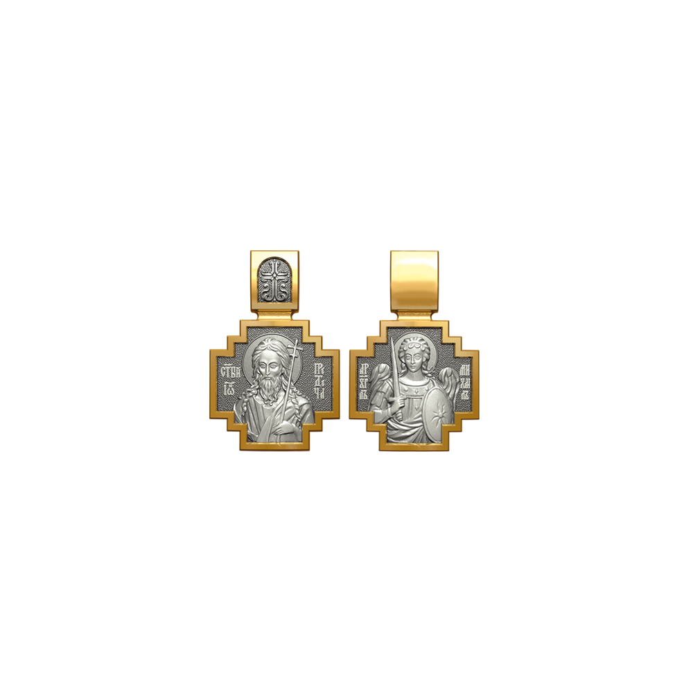 Позолоченная нательная иконка с образом Святого Иоанна Крестителя на лицевой стороне и Архангела Михаила на оборотной.