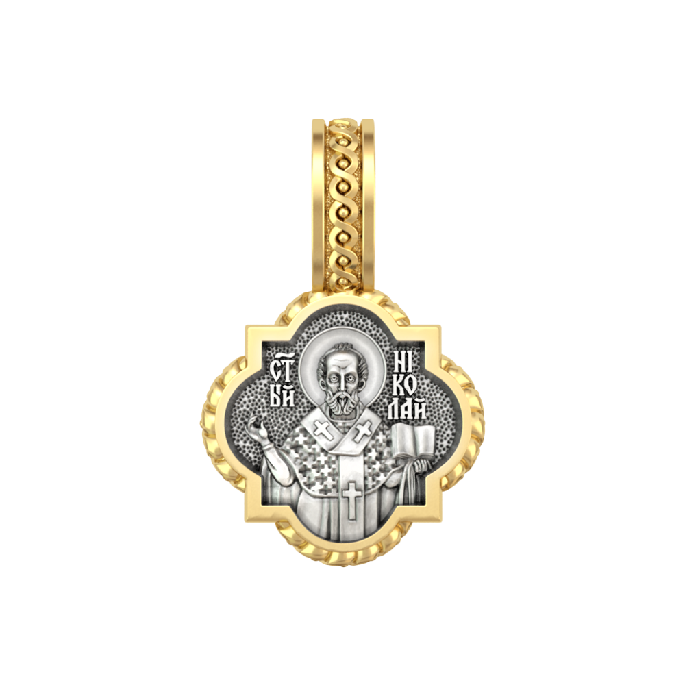 Миниатюрная серебряная нательная иконка с образом Святителя Николая Угодника на лицевой стороне и Ангела Хранителя на оборотной.
