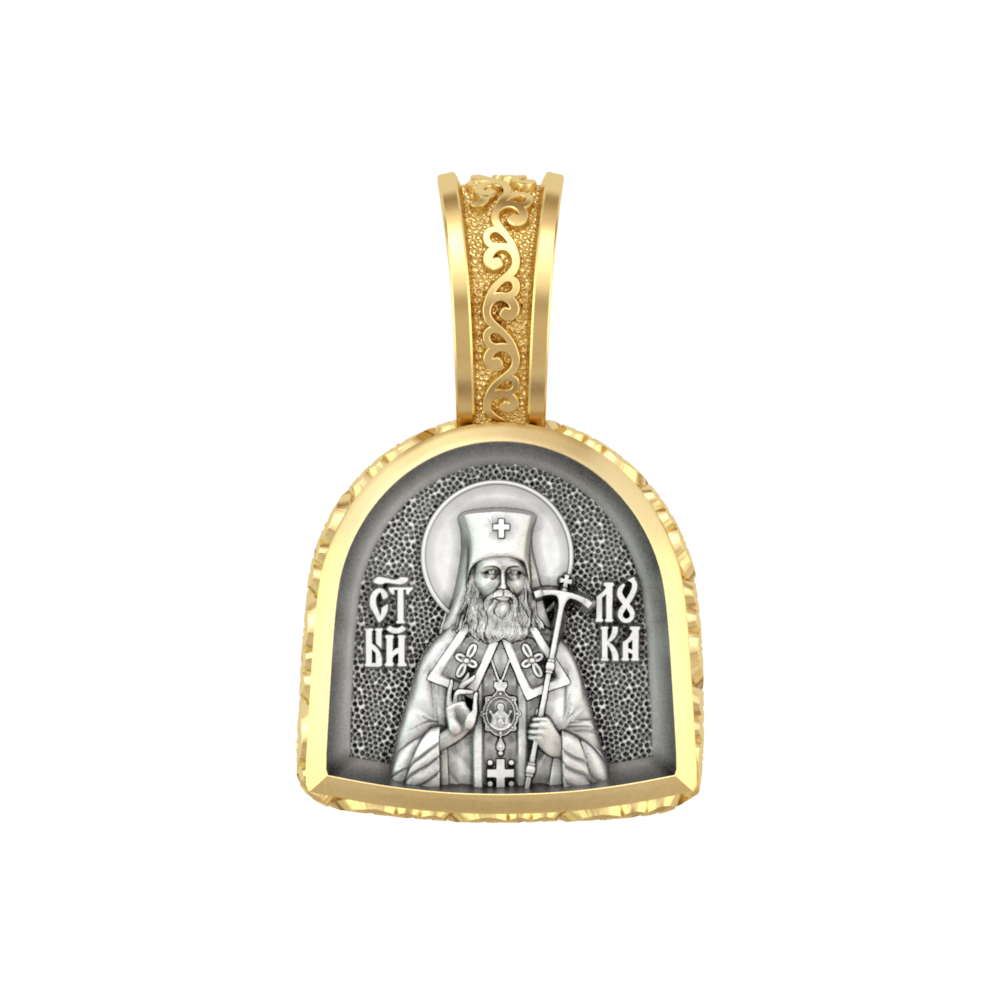 Миниатюрная серебряная нательная иконка с образом Архиепископа Луки Крымского на лицевой стороне и Ангела Хранителя на оборотной.