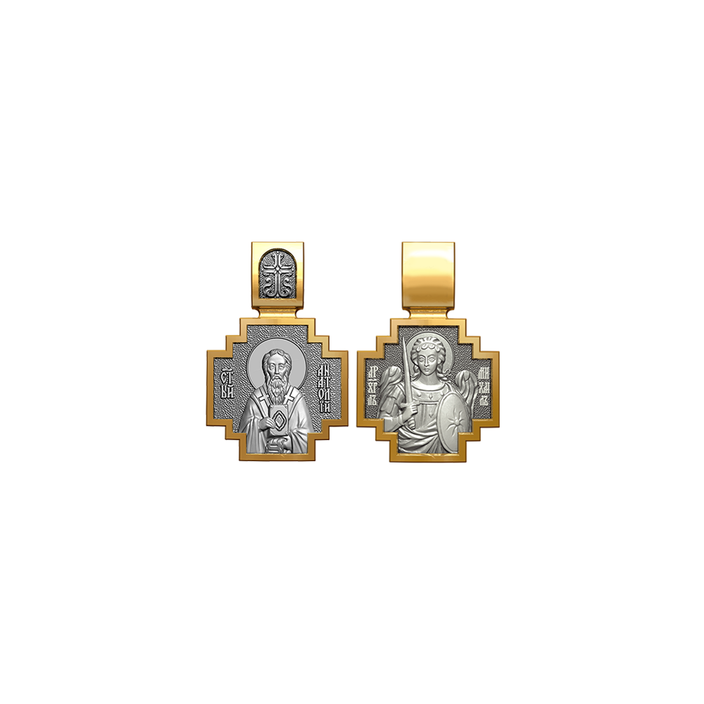 Позолоченная нательная икона с образом Святителя Анатолия и Архангела Михаила, самого могучего ангела воинства Христова.