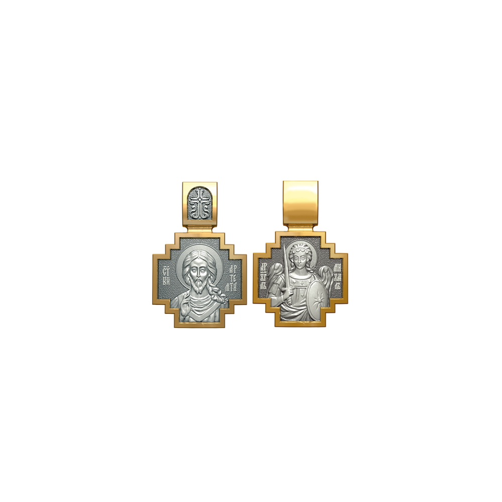 Позолоченная нательная иконка с почитаемым образом Святого Артемия и Архангела Михаила, самого могучего ангела воинства Христова.