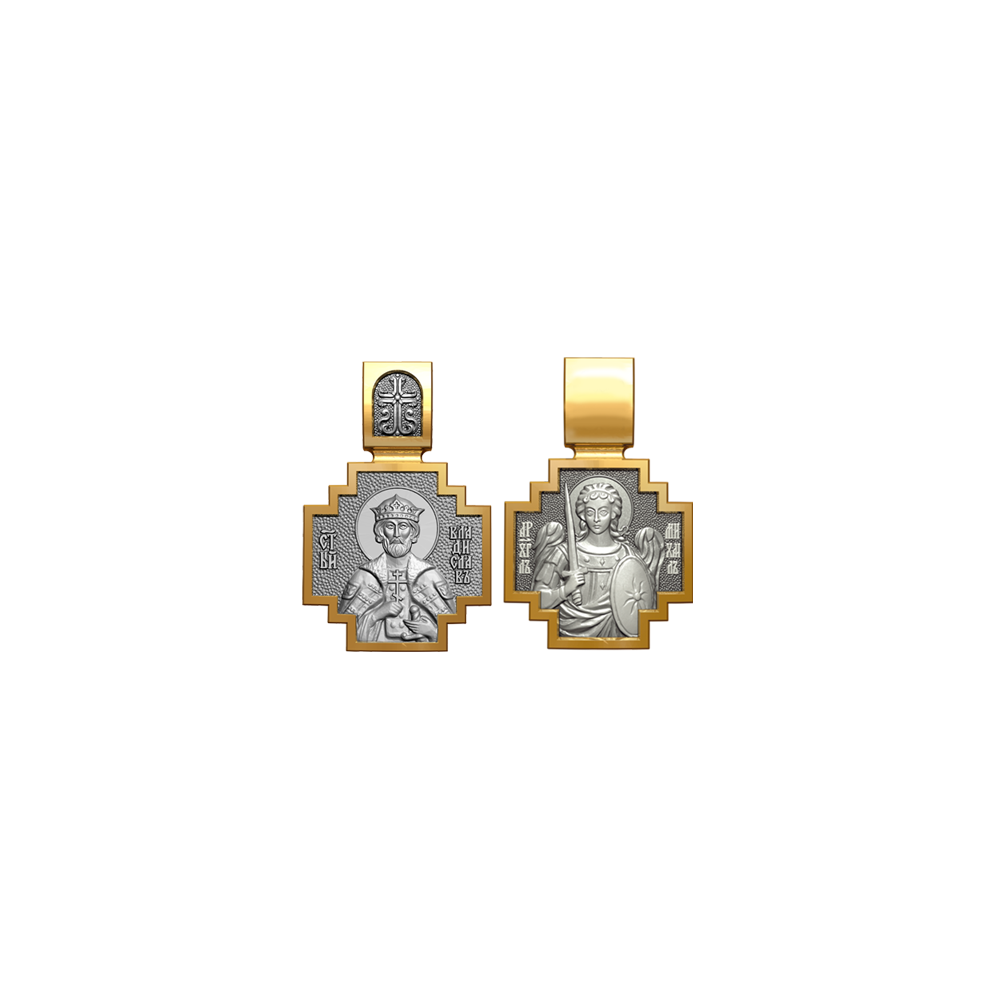 Позолоченная нательная икона с образом Святого Владислава и Архангела Михаила, самого могучего ангела воинства Христова.