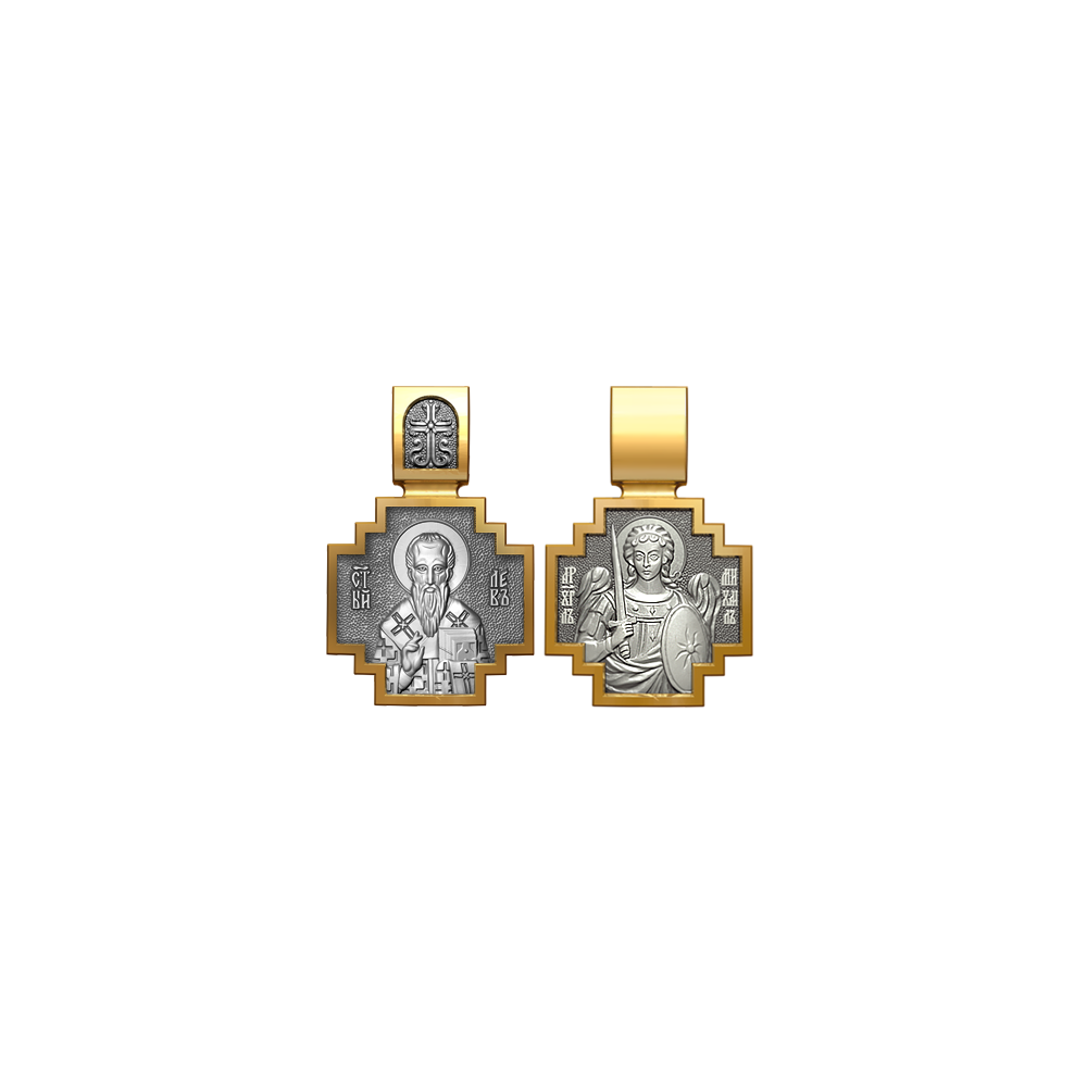 Позолоченная нательная иконка с почитаемым образом Святого святителя Льва и Архангела Михаила, самого могучего ангела воинства Христова.