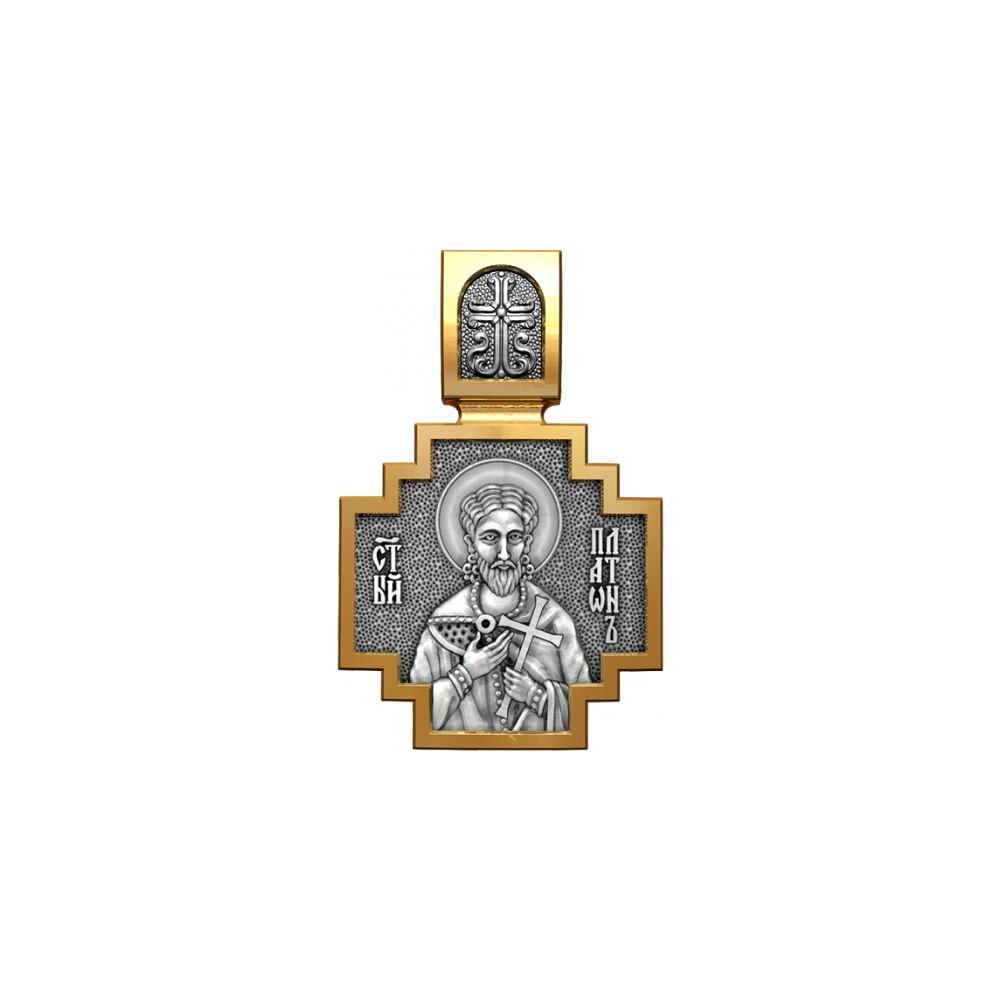 Позолоченная нательная иконка с почитаемым образом Святого Платона и Архангела Михаила, самого могучего ангела воинства Христова.