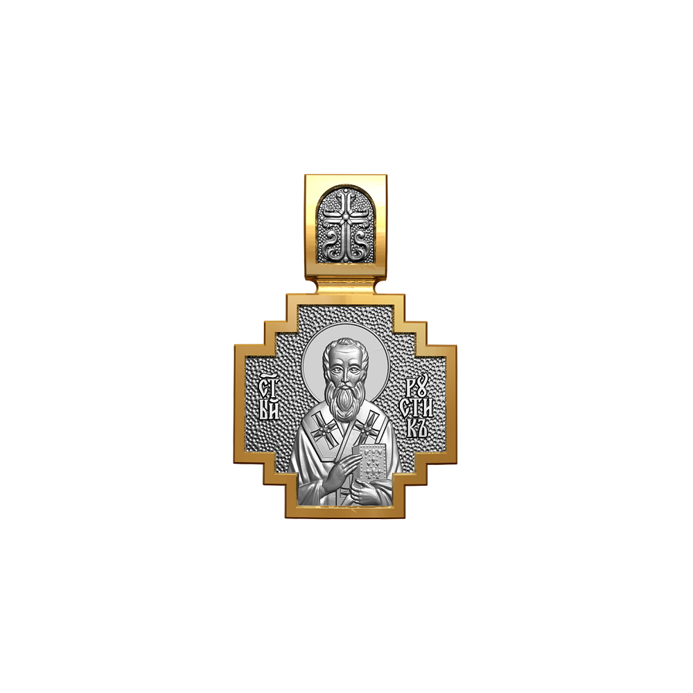 Позолоченная нательная иконка с почитаемым образом Святого Руслана и Архангела Михаила, самого могучего ангела воинства Христова.