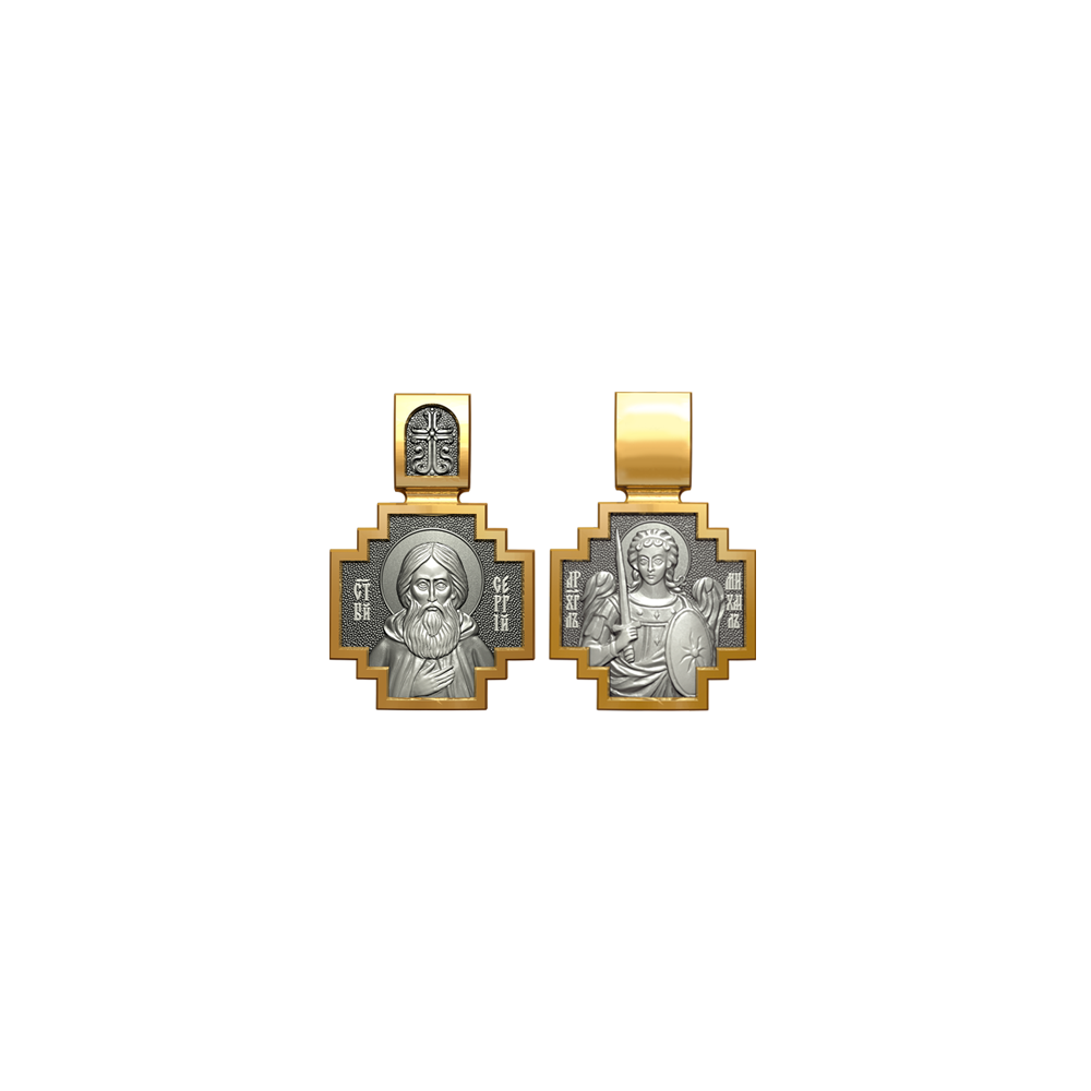 Позолоченная нательная иконка с почитаемым образом Святого Сергия и Архангела Михаила, самого могучего ангела воинства Христова.