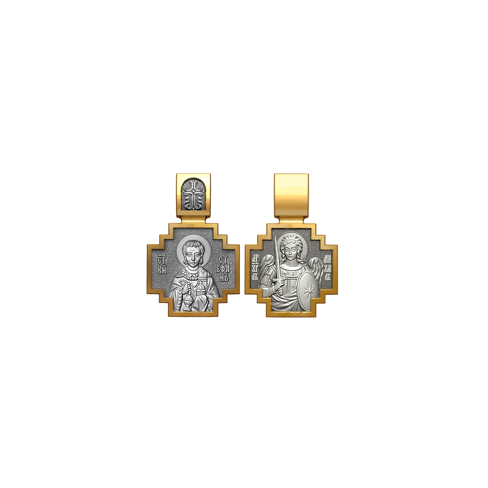 Позолоченная нательная иконка с почитаемым образом Святого Стефана и Архангела Михаила, самого могучего ангела воинства Христова.