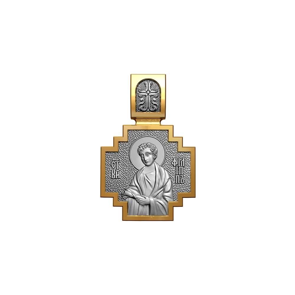 Позолоченная нательная иконка с почитаемым образом Святого Филиппа и Архангела Михаила, самого могучего ангела воинства Христова.