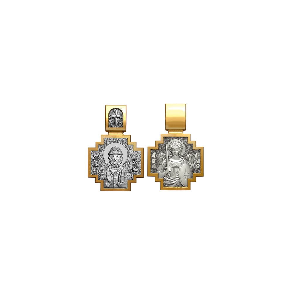 Позолоченная нательная икона с почитаемым образом Святого Ярослава и Архангела Михаила, самого могучего ангела воинства Христова.