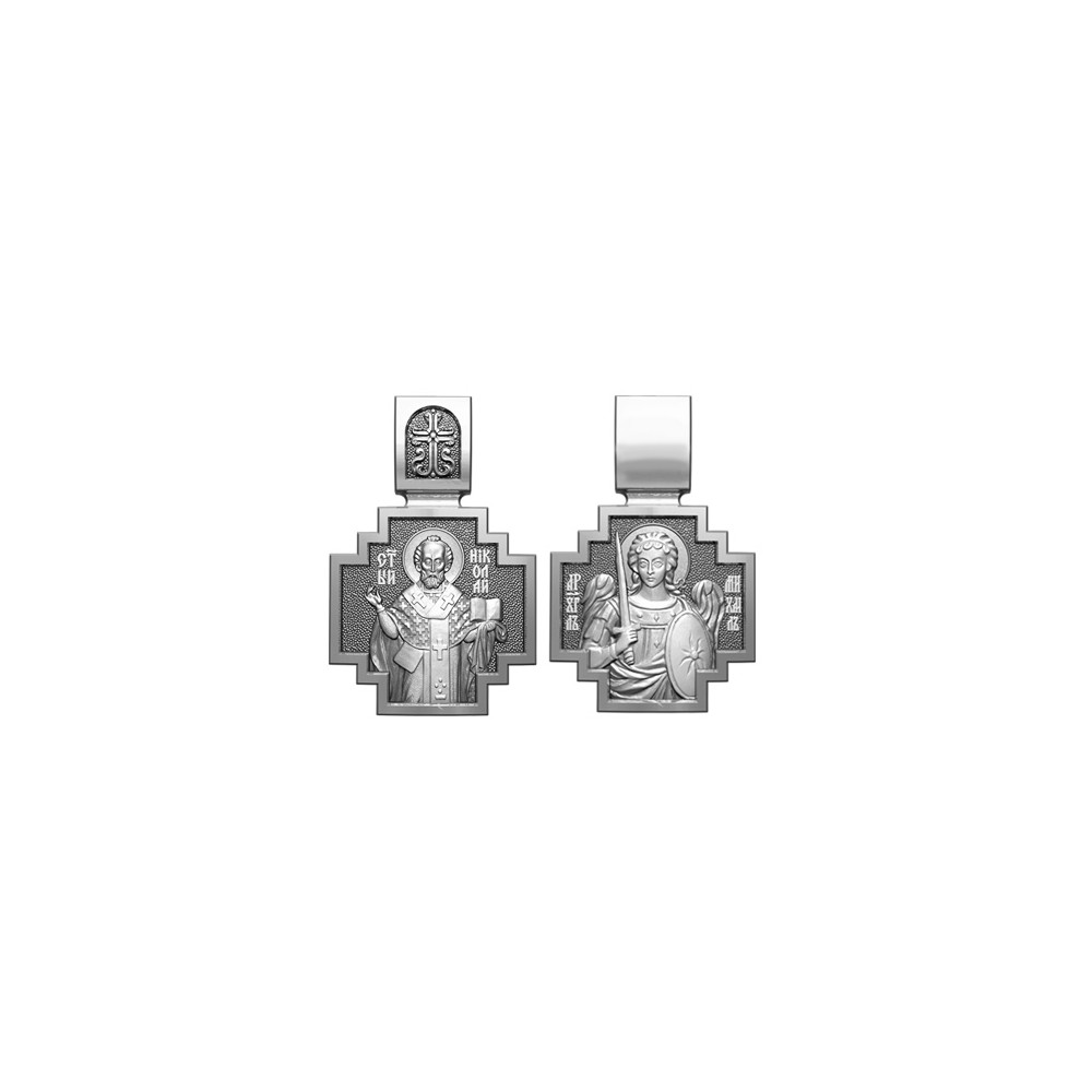 Серебряная нательная иконка с почитаемым образом Николая Чудотворца и Архангела Михаила, самого могучего ангела воинства Христова.