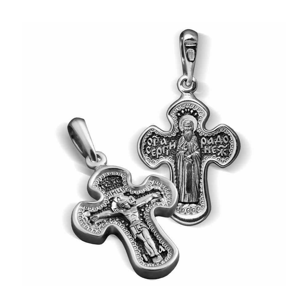 Серебряный нательный крестик «Сергий Радонежский»