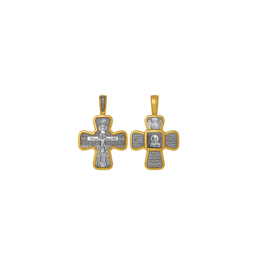 Крест с распятием Христовым на лицевой стороне и образом Святого Димитрия Донского на оборотной. На крестике написана молитва: «Святый Ангел Хранитель мой моли Бога о мне», «Все святые молите Бога о мне».