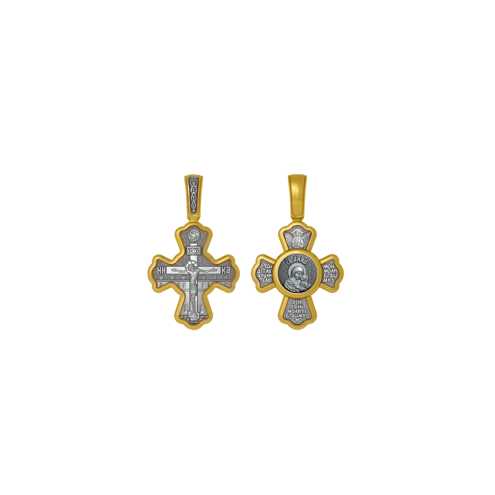 Крест с распятием Христовым на лицевой стороне и образом Святой праведной Анны на оборотной. На крестике написана молитва: «Святый Ангел Хранитель мой моли Бога о мне», «Все святые молите Бога о мне».