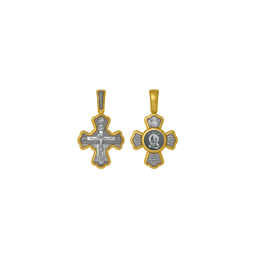 Крест с распятием Христовым на лицевой стороне и образом Святой мученицы Дарьи на оборотной. На крестике написана молитва: «Святый Ангел Хранитель мой моли Бога о мне», «Все святые молите Бога о мне».