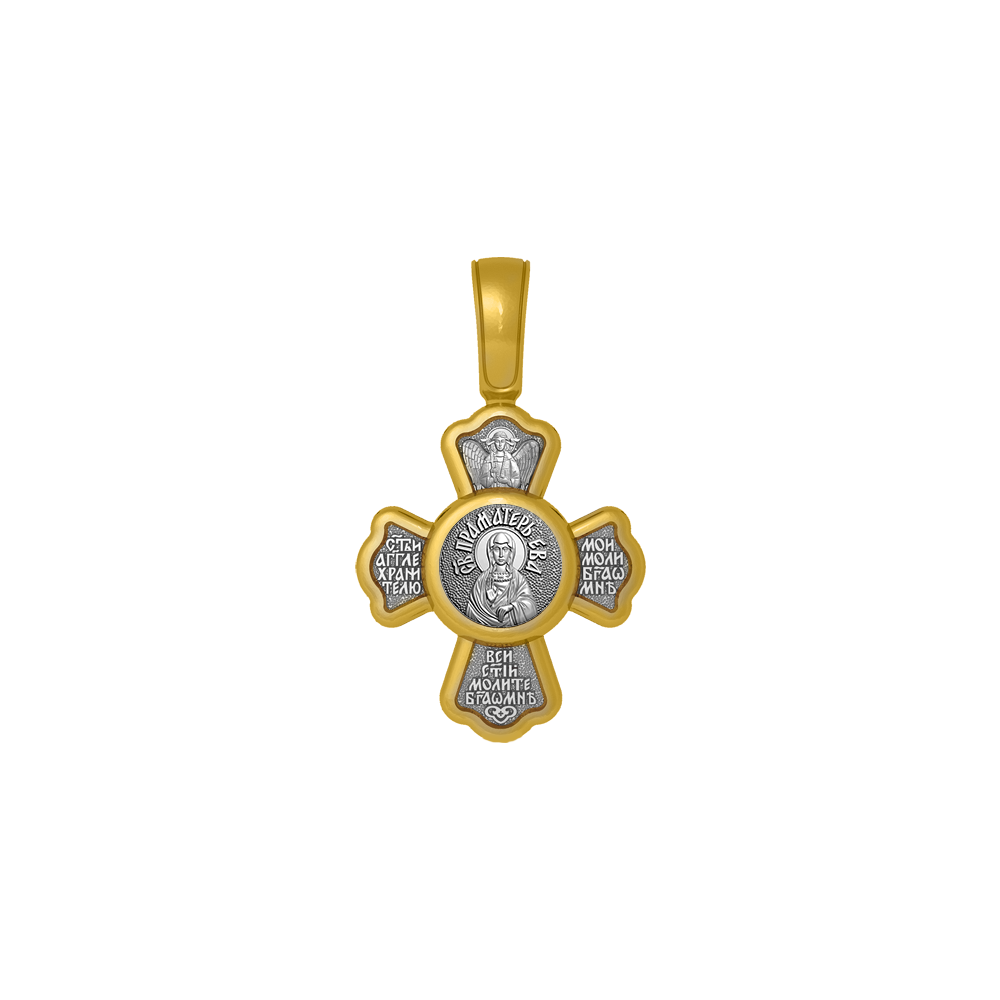 Крест с распятием на лицевой стороне и образом Евы — праматери человеческого рода на оборотной. На крестике написана молитва: «Святый Ангел Хранитель мой моли Бога о мне», «Все святые молите Бога о мне».