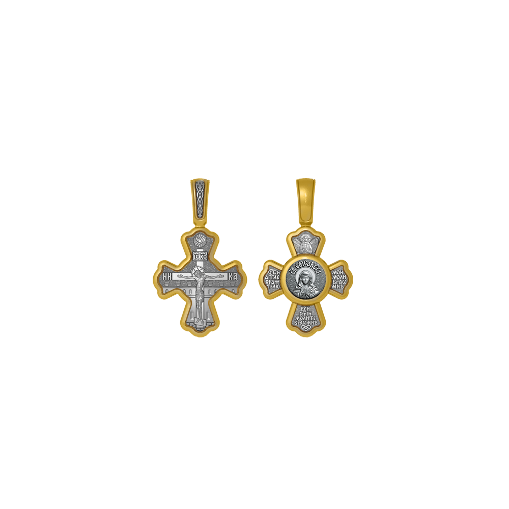 Крестик с распятием Христовым на лицевой стороне и образом Святой праведной Елисаветы на оборотной. На кресте написана молитва: «Святый Ангел Хранитель мой моли Бога о мне», «Все святые молите Бога о мне».