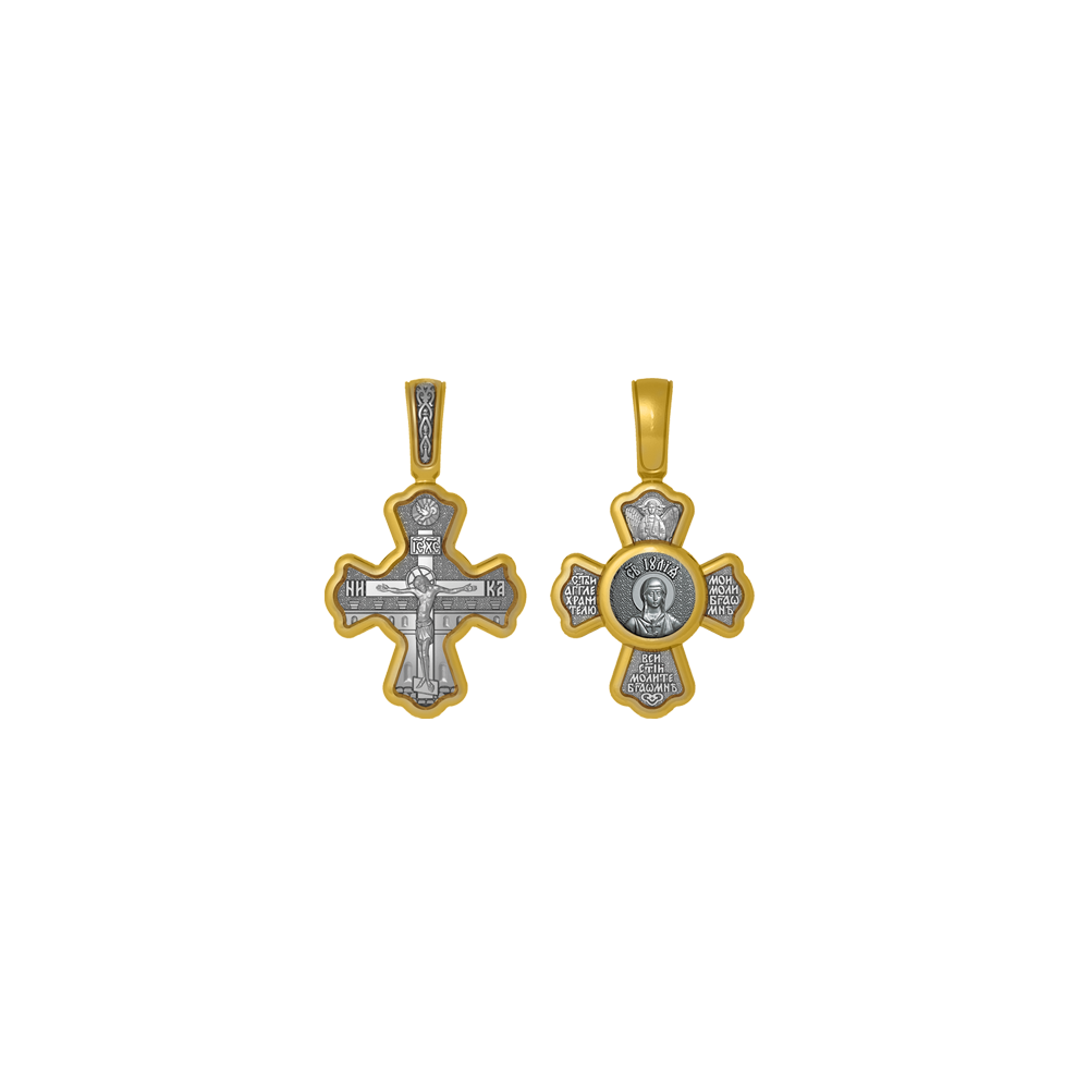 Крестик с распятием Христовым на лицевой стороне и образом Святой Юлии (Иулии) на оборотной. На кресте написана молитва: «Святый Ангел Хранитель мой моли Бога о мне», «Все святые молите Бога о мне».