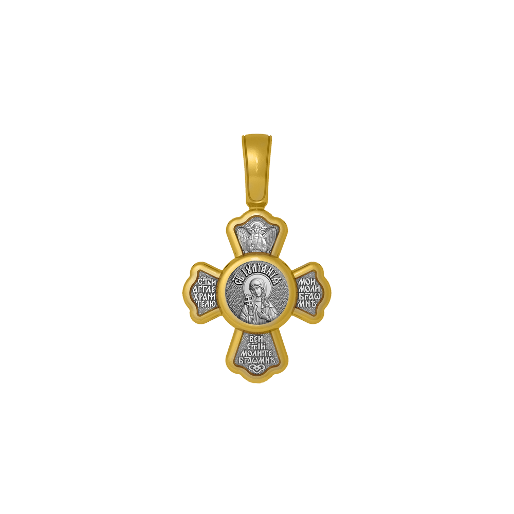 Крест с распятием Христовым на лицевой стороне и образом Святой Ульяны (Иулианы) на оборотной. На крестике написана молитва: «Святый Ангел Хранитель мой моли Бога о мне», «Все святые молите Бога о мне».